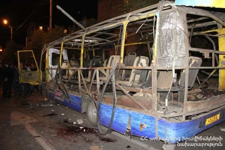 ՀԱՍԱՐԱԿՈՒԹՅՈՒՆ«Հաստատված կարելի Է համարել, որ պաթյունը պայմանավորված չէ ավտոբուսի տեխնիկական անսարքությամբ։ Այսինքն, ավտոբուսում եղել է պայթուցիկ։ Սակայն չի կարելի պնդել, որ սա ահաբեկչական ակտ Է: Խնդիրն այն Է, որ պայթյունի հետևանքով ավտոբուսից պոկված երկաթյա թիթեղներից և ոչ մեկի վրա բեկորներից առաջացած անցքեր չկան։ Ահաբեկչական ակտի դեպքում ավելի մեծ է հավանականությունը, որ պայթուցիկը լցոնված լինի մետաղական կտորներով, որպեսզի զոհերի թիվը ավելի մեծ լինի։