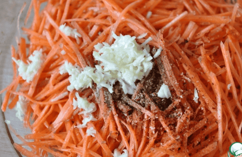 Գազարը քերել, ավելացնել կծու պղպեղը, ճզմած սխտորը, քացախը, սոյայի սոուսը, բուսայուղը։