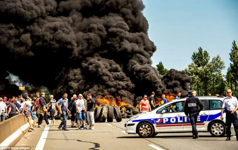 Ֆրանսիայի և Անգլիայի միջև լաստանավերի խոշոր նավահանգիստ հանդիսացող ֆրանսիական Կալե քաղաքում երեկվանից սև ծուխ է բարձրանում այրվող անվադողերից, իսկ ճանապարհներին հսկայական խցանումներ են առաջացել՝ ի դժբախտություն ճանապարհորդողների։