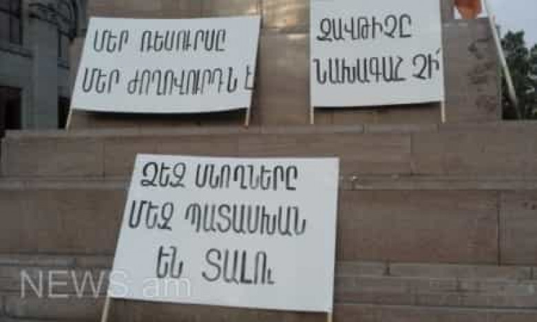 Շարժման երկու տասնյակ անդամները՝ հիմնականում տարեց քաղաքացիներ, Հանրապետության հրապարակ հասան երթով՝ Ազատության հրապարակից: «Մեր ռեսուրսը մեր ժողովուրդն է», «Զավթիչը նախագահ չի», «Ձեզ սնողները մեզ պատասխան են տալու» գրությամբ պաստառները ձեռքերին՝ նրանք քայլերթ անցկացրին Հյուսիսային պողոտայում եւ քաղաքացիներին կոչ արեցին միանալ իրենց: