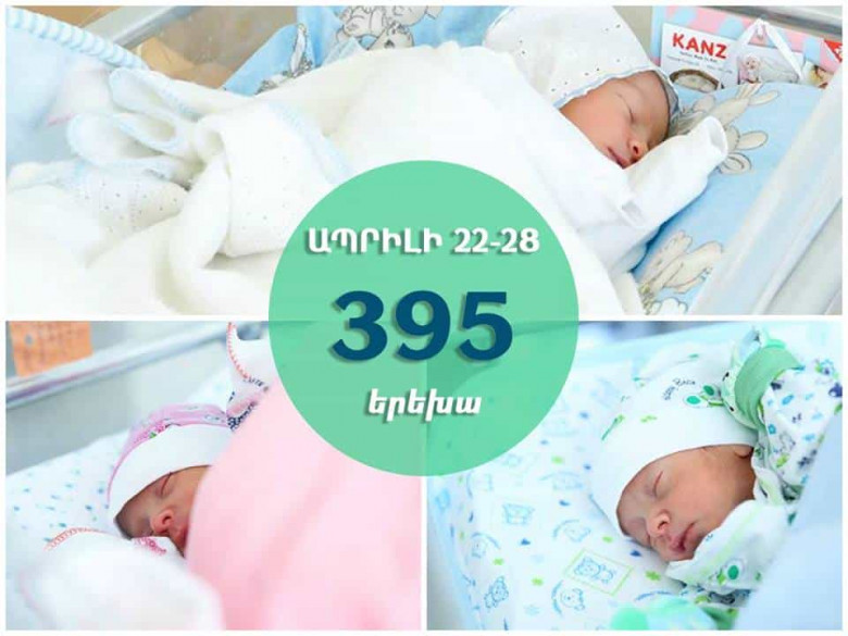 Ապրիլի 22-28-ը մայրաքաղաքի ծննդատներում լույս աշխարհ է եկել 395 երեխա՝ 217 տղա, 178 աղջիկ: