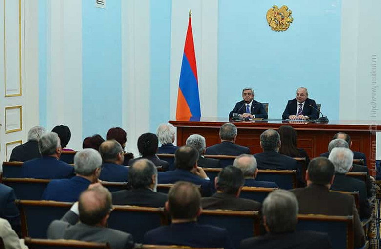 Հանդիպման մասնակիցները համակարծիք են եղել, որ համազգային, համապետական խնդիրների շուրջ միասնականությունը, համախմբվածությունը պետք է տևական լինի, անհրաժեշտ է, որ յուրաքանչյուրն իր տեղում, իր մասնագիտական բնագավառում արդյունավետ գործելու առավելագույն ջանք ներդնի՝ այդպիսով օգտակար լինելով ընդհանուր հաջողությանը: Քննարկվել են այդ տեսանկյունից պետության ակնկալիքները գիտական, հասարակական-քաղաքական շրջանակներից, ինչպես նաև Հանրային խորհրդից՝ առկա ներուժը լիարժեքորեն օգտագործելու համար: «Թող ոչ ոք չկասկածի՝ մենք վստահ քայլերով հասնելու ենք մեր բոլոր նպատակների իրականացմանը: Ապրիլի սկզբին մենք հաղթել ենք, հաղթել ենք մեր միասնական կամքի ու մեր հավատի շնորհիվ: Մեր հաղթանակները շարունակվելու են, շարունակվելու են բոլոր ոլորտներում: Այսօր ձեզնից՝ Հանրային խորհրդի անդամներից ես ակնկալում եմ ձեր մասնաբաժին աջակցությունը մեր հետագա հաղթանակների ապահովման գործում: Մենք նախ և առաջ մեր հանրության շրջանում պետք է վառ պահենք հաղթանակի բերկրանքը, հավատը սեփական ուժերին, մեզնից յուրաքանչյուրը պետք է դառնա միասնության քարոզիչ, միավորող առաջնորդ: Երբ մենք միասին ենք ու վստահ մեր ուժերին, ոչ ոք մեզ չի կարող վնասել: Իսկ մենք այսօր միասին ենք ու վստահ մեր ուժերին: Ուրեմն՝ մեր հրապարակային գործունեությամբ, մեր խոսքով ու գործով անենք այնպես, որ վաղն էլ նույն եռանդով միասնական ու վստահ լինենք: Ահա, թե ինչ օժանդակություն եմ ակնկալում ձեզնից»- ասել է Նախագահ Սերժ Սարգսյանը: