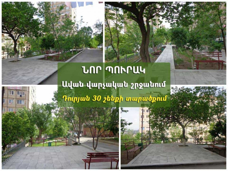 ՀԱՍԱՐԱԿՈՒԹՅՈՒՆԵրևանի քաղաքապետարանի 2016 թվականի շինբարեկարգման ծրագրով մայրաքաղաքի Ավան վարչական շրջանի Դուրյան 30 շենքի` նախկինում բնակիչների կողմից զավթած տարածքում նոր պուրակ է կառուցվել: Պուրակում տեղադրվել են նոր նստարաններ, աղբամաններ, կառուցվել են ձևավոր սալիկներով ճեմուղիներ, իսկ տարածքն առանձնացվել է ցանկապատով: Առաջիկայում կավելանա նաև սիզամարգերի թիվը: Կանաչապատ ու բարեկարգ պուրակն արդեն դարձել է ավանցիների սիրելի վայրերից մեկը: