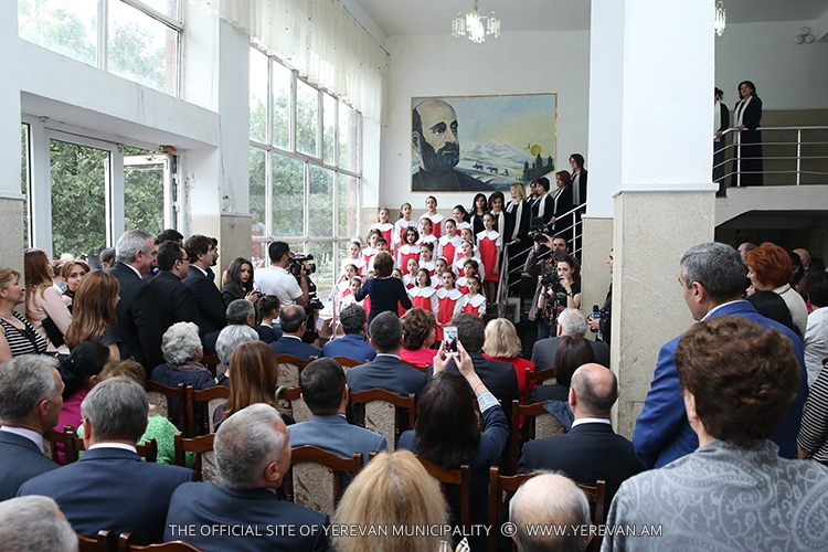 «Յուրաքանչյուր դպրոց սերնդեսերունդ փոխանցվող իր ավանդույթներով է առանձնանում և կարևորվում: Այս դպրոցն առանձնանում է իր մշակութային տարրերով, չնայած որ չունի նման ուղղվածություն, ինչն, իհարկե, դպրոցի անձնակազմի ջանքերի շնորհիվ է, որը գնահատվում է»,-նշել է Արամ Սուքիասյանն ու շարունակելով իր միտքը՝ Երևանի քաղաքապետի կողմից կրթության բնագավառում ունեցած ձեռքբերումների և հոբելյանի կապակցությամբ դպրոցին է հանձնել «Երևանի զինանշան» հուշամեդալը:
