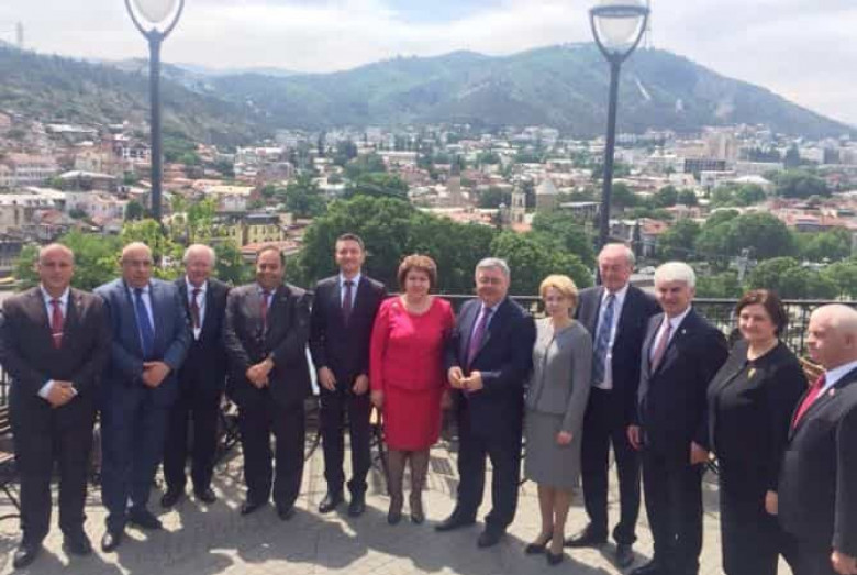Այցի շրջանակում մայիսի 26-ին պատվիրակությունը հանդիպում է ունեցել Վրաստանի խորհրդարանի նախագահ Դավիթ Ուսուպաշվիլիի հետ. հանդիպման ընթացքում քննարկվել է երկկողմ հետաքրքրություն ներկայացնող հարցերի լայն շրջանակ: Հանդիպմանը մասնակցել է նաեւ Վրաստանում Հայաստանի Հանրապետության արտակարգ եւ լիազոր դեսպան Յուրի Վարդանյանը: