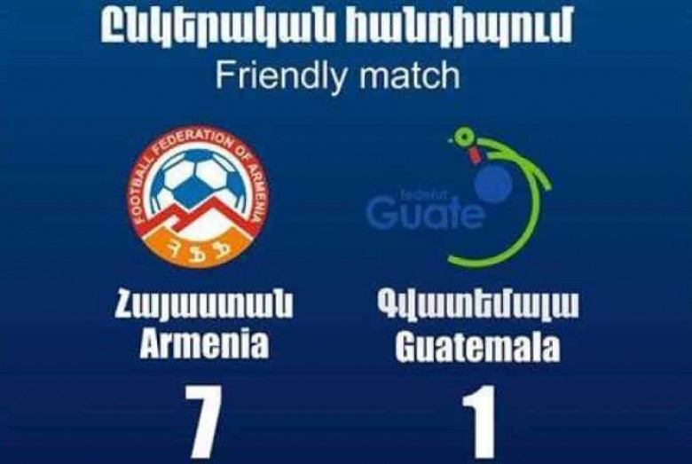 ՍՊՈՐՏՀայաստանի ֆուտբոլի ազգային հավաքականն ԱՄՆ-ում անցկացված ընկերական խաղում ջախջախեց Գվատեմալայի հավաքականին: Հայ ֆուտբոլիստները մրցակցի նկատմամբ հաղթանակի հասան 7-1 հաշվով: