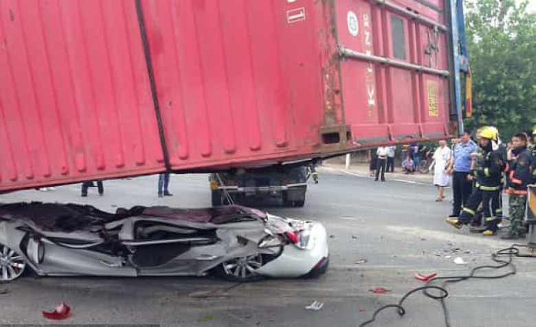 Այս վթարը տեղի է ունեցել Չինաստանի Ցինդաո քաղաքում: Բեռնարկղեր տեղափոխող բեռնատարը շրջվել է և ողջ բեռն ընկել է մի մեքենայի վրա, որում գտնվում էին տղամարդ և աղջիկ: