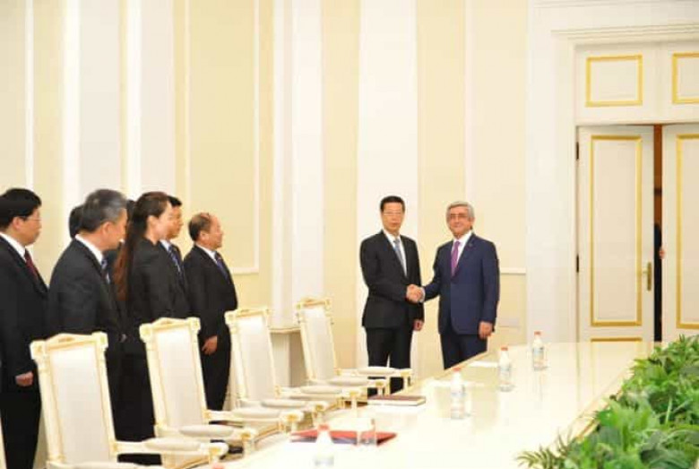 Հանրապետության Նախագահը ողջունել է բարձրաստիճան հյուրի և նրա գլխավորած պատվիրակությանը, ընդգծելով, որ ՉԺՀ առաջին փոխվարչապետի այցը Հայաստան, վկայում է հայ-չինական երկկողմ համագործակցության բարձր մակարդակի և այն ամրապնդելու փոխադարձ ցանկության մասին: Նշելով, որ Չինաստանը Հայաստանի կարևոր միջազգային գործընկերներից է, Սերժ Սարգսյանը շեշտել է, որ հայ-չինական բազմադարյա բարեկամական հարաբերությունների հետևողական զարգացումը մեր երկրի արտաքին քաղաքականության առաջնահերթություններից է: