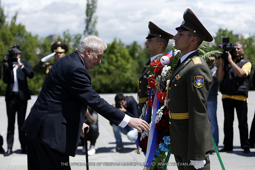 ՀԱՍԱՐԱԿՈՒԹՅՈՒՆՊետական այցով Հայաստանի Հանրապետություն ժամանած Չեխիայի Հանրապետության նախագահ Միլոշ Զեմանը ՀՀ արտաքին գործերի նախարար Էդվարդ Նալբանդյանի և Երևանի քաղաքապետ Տարոն Մարգարյանի ուղեկցությամբ այցելել է Ծիծեռնակաբերդի հուշահամալիր, ծաղկեպսակ դրել Հայոց ցեղասպանության զոհերի հուշարձանին և ծաղիկներ խոնարհել Հայոց ցեղասպանության սուրբ նահատակների հիշատակը հավերժացնող անմար կրակի մոտ: