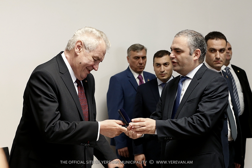 Այնուհետ քաղաքապետ Տարոն Մարգարյանի ուղեկցությամբ Միլոշ Զեմանն այցելել է Հայոց ցեղասպանության թանգարան, ծանոթացել ցուցադրությանը և գրառում կատարել թանգարանի պատվավոր հյուրերի հուշամատյանում: