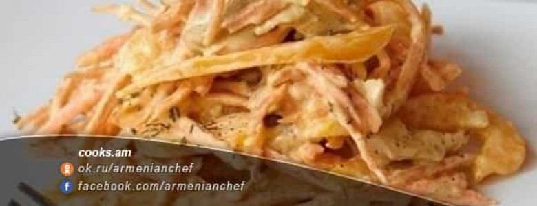 Գազարով և հավի մսով աղցան, որի պատաստումը Ձեզանից կխլի ընդամենը 20 րոպե: Կարելի է համեմել ինչպես մայոնեզով, այնպես էլ թթվասերով: