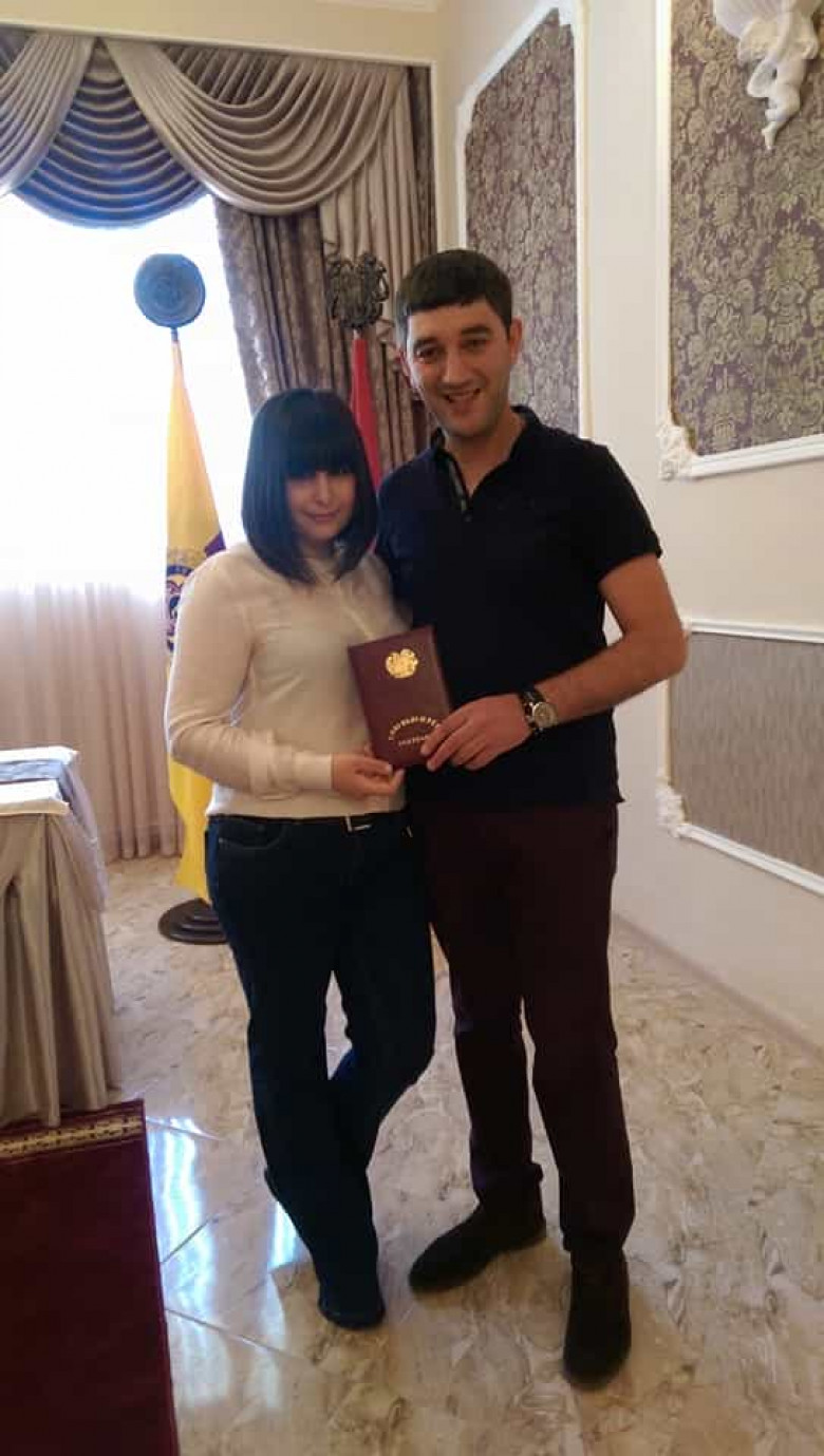 Ամուսիններին առաջինը շնորհավորել են հարազատները, ովքեր զույգին մենակ չեն թողել նույնիսկ Քաղաքացիական կացության ակտերի գրանցման աշխատասենյակում: «Մեր կողքին են եղել մայրս, եղբայրս՝ ընտանիքի հետ, կնոջս մայրը, քույրը, մեր քավորն ու քավորի կինը: Առաջին շնորհավորողներն էլ հենց նրանք են եղել», - ընդգծեց նա: