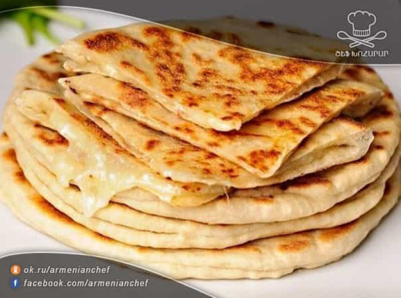 - Խմորի ամեն գունդը գրտնակով կլոր բացեք: