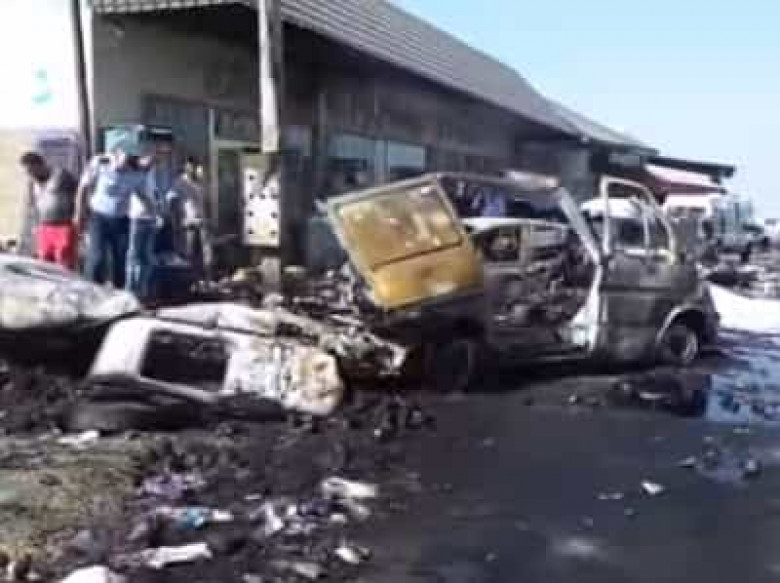 «Մակ» մակնիշի ավտոմեքենայի երկաթյա ցիստեռնը պոկվել է կցորդից, եւ դրանում առկա վառելանյութը թափվել է, որի հետեւանքով հրդեհ է բռնկվել Վահրամ Արզումանյանի վարած «Ֆորդ Տրանզիտ» մակնիշի, ինչպես նաեւ՝ ճանապարհի կողքին կայանված «Տոյոտա յարիս» եւ Երեւան քաղաքի բնակիչ Է.Արզումանյանի վարած «Մերսեդես Բենց 350 » մակնիշի ավտոմեքենաներում։
