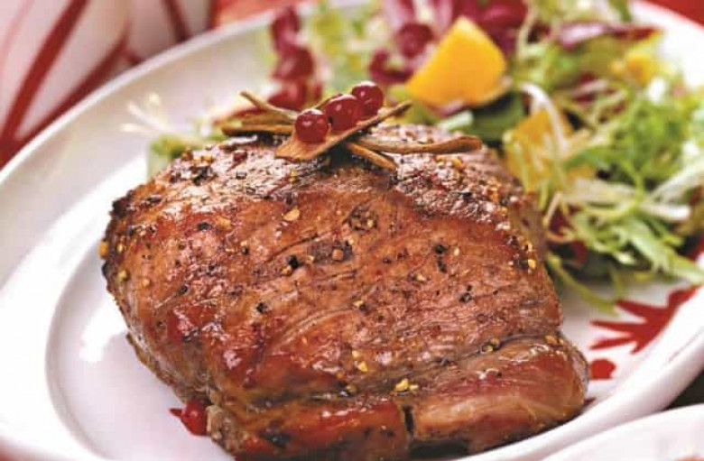 Թավայի մեջ տաքացնել 2 ճ/գ ձիթապտղի յուղ, միսը տապակել 2 կողմից, մինչև ոսկեգույն երանգ առաջանալը: Տապակած միսը դնել հրակայուն ափսեի մեջ: