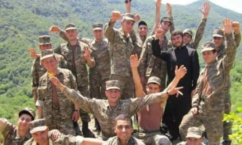 Լուսանկարը' Հովհաննես սարկավագ Գալստյանից ֆեյսբուքյան էջից' հունիսի 14-ին մարտական դիրքերից մեկում գտնվող Ս. Ղազարոսի մատուռ-եկեղեցի կատարած ուխտագնացությունից: