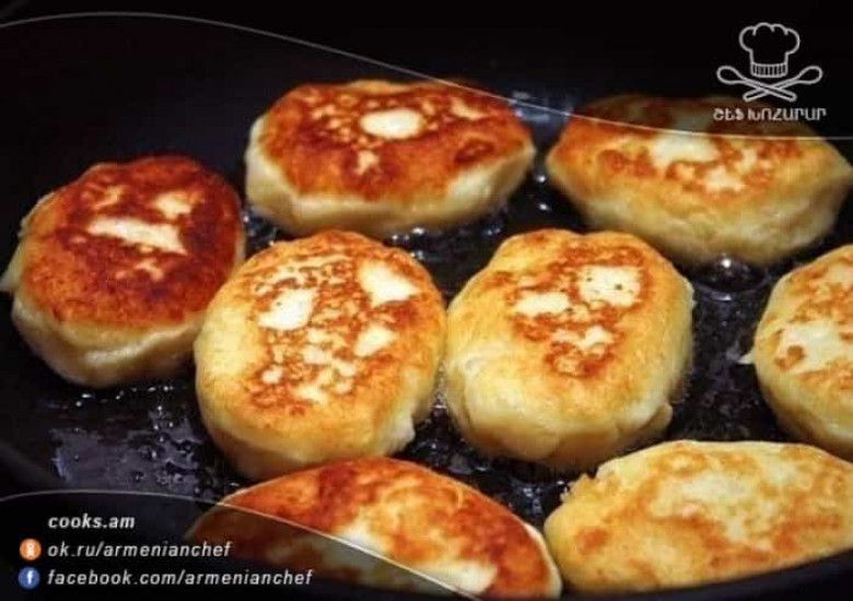- Ստացված խմորից կոտլետներ ենք ձևավորում և տեղափոխում ենք ձիթայուղով տաք թավայի մեջ։ Կոտլետները տապակում ենք միջին ուժեղության կրակի վրա` մինչև ոսկեգույն դառնան։ Այնուհետև շրջում ենք և մյուս կողմից էլ ենք տապակում։