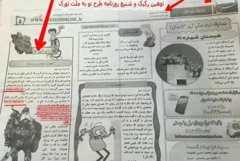 Իրանական «Թերհե Nou» օնլայն թերթում հրապարակված հեքիաթի հերոսը, որը պատմում է թուրք-իրանական պատերազմի մասին, թուրքերին մարդ չի համարել:Հեքիաթում հերոսն ասում է. «Մենք թուրքերին մարդ չենք համարում: Թուրքերը կին են, իսկ պարսիկները` տղամարդ: Թող թուրքերը գնան կանանց պես բուրդ գզեն»:
