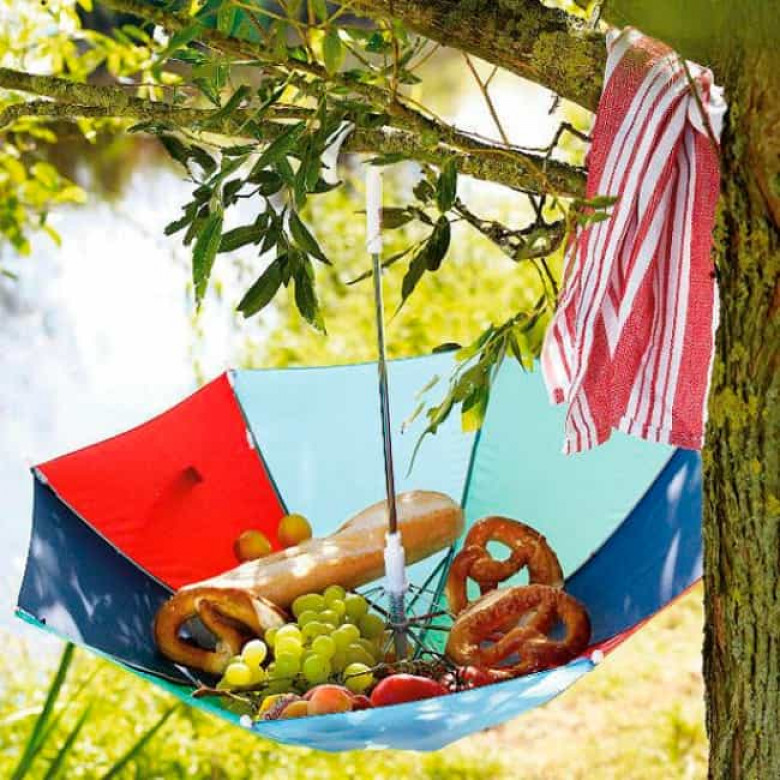 Անձրևանոցը ծառի ճյուղից կախելով և դրա մեջ սնունդը պահելով դուք այն հեռու կպահեք մրջյուններից:
