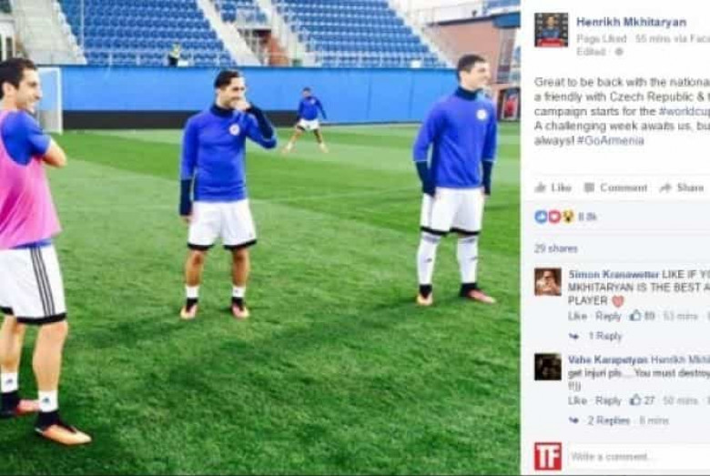 ՍՊՈՐՏ«Մանչեսթեր Յունայթեդ»-ի կիսապաշտպան Հենրիխ Մխիթարյանն անդրադարձել է Հայաստանի հավաքականի առաջիկա խաղերին: «Հիանալի է վերադառնալ ազգային թիմ: Առջևում Չեխիայի դեմ ընկերական խաղն ու աշխարհի 2018 թվականի առաջնության ընտրական հանդիպումներն են: Մեզ սպասվում է դժվարին շաբաթ, սակայն ես պատրաստ եմ, ինչպես միշտ: Առա՛ ջ, Հայաստան»,- «Արմենպրես»-ի փոխանցմամբ` ֆեյսբուքյան էջում գրել է Հայաստանի ազգային հավաքականի ավագը: