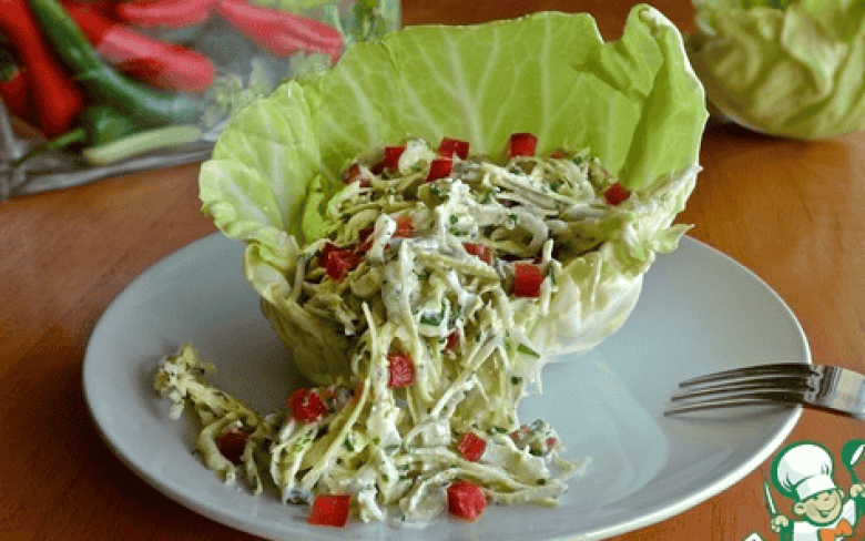 Աղցանը կարող եք մատուցել հենց կաղամբի տերևի մեջ։