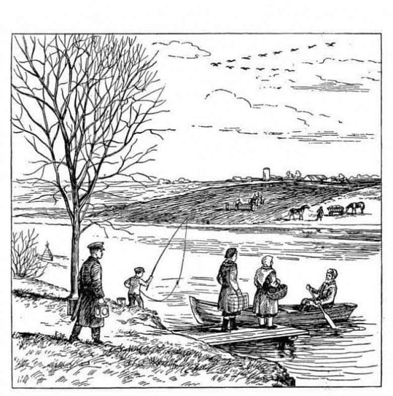 Նավակին է մոտենում երկաթգծի աշխատակցի համազգեստով տղամարդը. Հետևաբար նա կամ աշխատանքի է գնում, կամ էլ վերադառնում է աշխատանքից:
