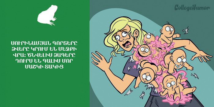 ԼԱՅՖԵրբևէ մտածե՞լ եք, թե ինչ կլիներ, եթե մարդկանց մոտ երեխաները ծնվեին, ինչպես օրինակ՝ ընձուղտների մոտ։ Իլյուստրատոր Պոլ Վեսթովերն իր պատկերազարդումներում ցույց է տալիս դա․