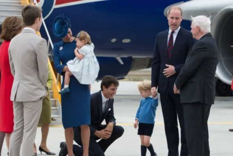 Դքսին եւ դքսուհուն՝ երեխաների հետ դիմավորել Է Կանադայի վարչապետ Ջասթին Թրյուդոն: Թրյուդոն փորձել Է բարեւել արքայազն Ջոջի հետ, բայց վերջինս չի համաձանել ո՛չ «ձեռք մեկնել», ո՛չ Էլ պարզապես սեղմել նրա ձեռքը: