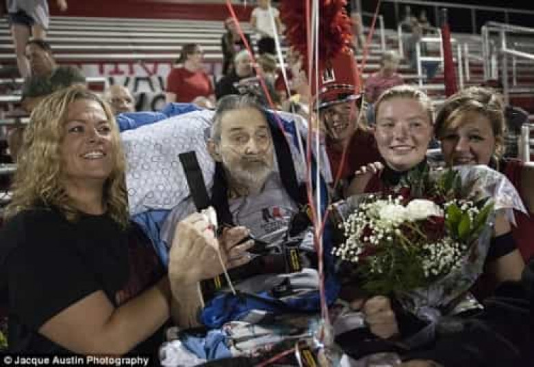 67-ամյա հայրիկին բժիշկների օգնությամբ եւ հատուկ սայլակով տեղափոխել են ստադիոն, որտեղ Մայքն անձամբ ծաղիկներ ու փուչիկներ է նվիրել դստերը՝ Միկայլային, որը Մորթոնի (Իլինոյս) ավագ դպրոցի նվագախմբի անդամ է: