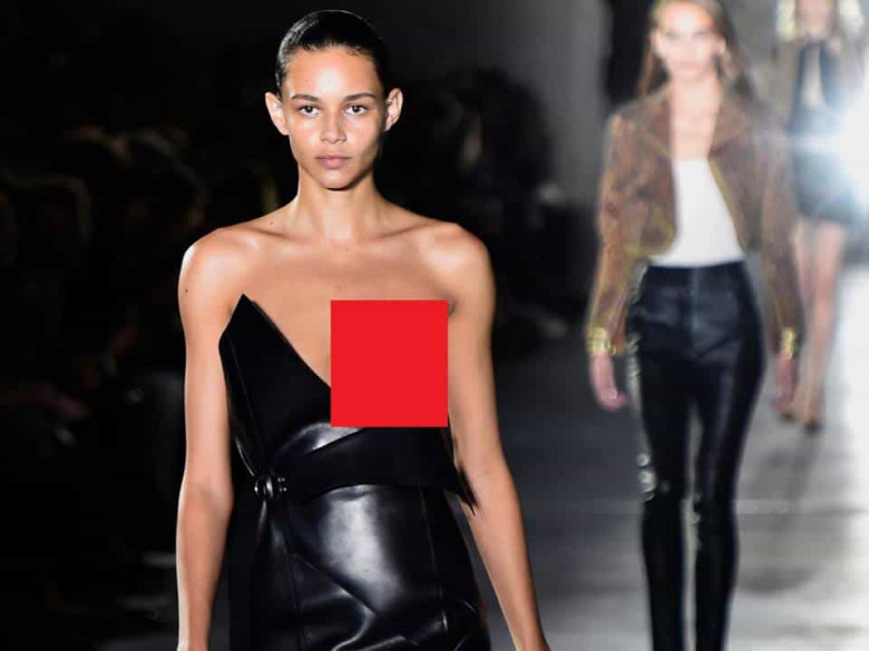 Փարիզի նորաձևության շաբաթում մոդել Բինքս Ուոլթոնը պոդիում դուրս եկավ մերկացրած, բայց փայլփլուն քարերով քաղարկված կրծքով: