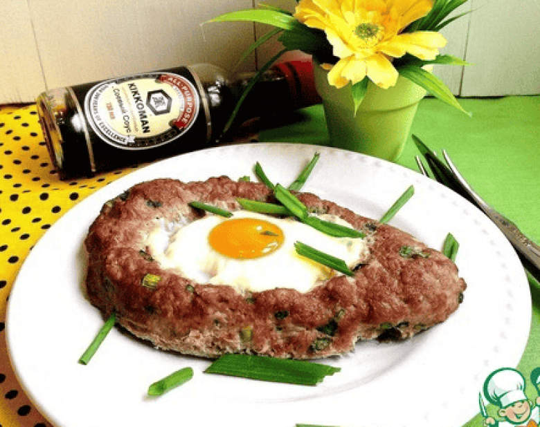 Մսի կենտրոնում բաժակի չափով խորություն տալ, կոտրել ձուն ու դնել ջեռոց 25 րոպե 200 աստիճանով․