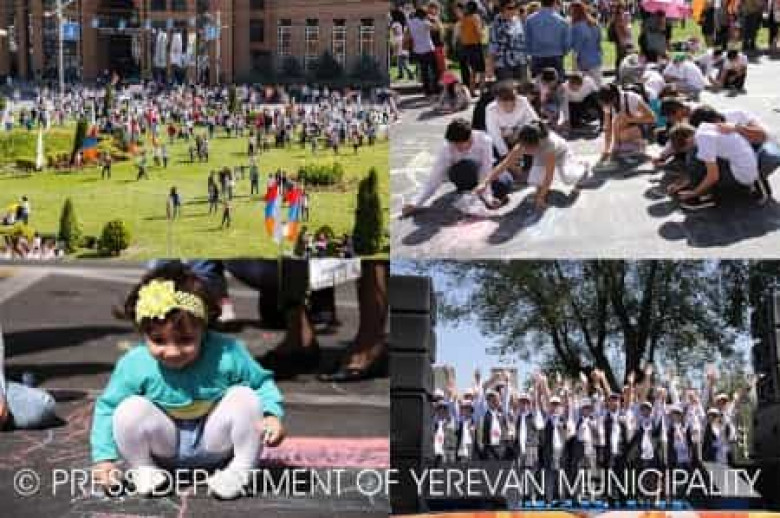 Տոնակատարության «Երևան՝ արևի քաղաք» կարգախոսին համահունչ՝ միջոցառման մասնակից ավելի քան 3 հազար մանուկներն արևային գույներով ու տրամադրությամբ են լցրել հրապարակը և իրենց շնորհավորանքներն ու գունագեղ երազանքները փոխանցել կավճանկարների միջոցով: Աշխատանքներում տեղ են գտել մայրաքաղաքում երեխաների սիրելի վայրերը, այդ թվում իրենց բակերն ու խաղահրապարակները: Բոլորի համար ապահովվել է գունավոր կավիճների անսահմանափակ քանակ: Միջոցառումն ուղեկցվել է համերգային ծրագրով: Փոքրիկ երգիչներն էլ մայրաքաղաքի ծննդյան օրվա առթիվ իրենց կատարումներն են նվիրել սիրելի Երևանին: