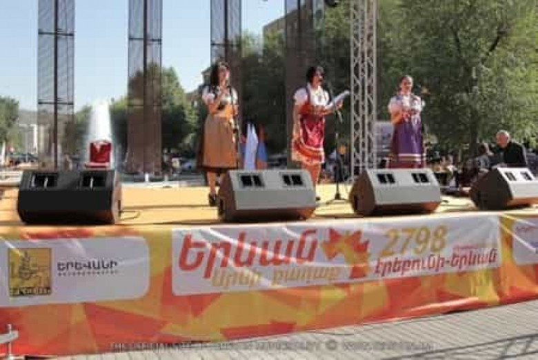 Հանրապետության հրապարակին հարակից Խաչքարերի պուրակում ազգային փոքրամասնությունների համույթներն ու անհատ կատարողները համերգային ինքնատիպ ծրագրով ողջունել են Արևի քաղաք Երևանի ծննդյան օրը: Համերգին, ի դեպ, մասնակցել են նաև մարզերից եկած համույթներ ու անհատ կատարողներ: Ընդհանուր առմամբ միջոցառմանը մասնակցել է ազգային փոքրամասնությունների 10 համայնք, այդ թվում` ռուսական, ուկրաինական, բելառուսական, լեհական, վրացական, հրեական, ասորական, քրդական, եզդիական և հունական համայնքները: