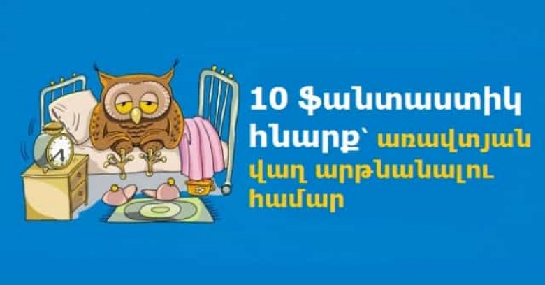 Առավտյան վաղ արթնանալը և տաք ու հարմարավետ անկողնից վեր կենալը չափազանց բարդ գործ է, որը քչերն են կարողանում հաղթահարել։ Սակայն դա ալյևս խնդիր չէ, քանի որ BlogNews –ը մշակել է վաղ արթնանալու 10 ֆանտաստիկ հնարքներ, որոնք և Ձեզ ենք ներկայացնում։