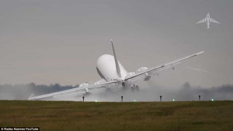 Տեսանյութում երևում է՝ ինչպես է ինքնաթիռը դեպի աջ «շպրտվում» օդային ուժգին հոսանքի կողմից, երբ փորձում է իջնել թռիչքուղու վրա: Այնուհետև այն տատանվում ու կրկին օդ է բարձրանում: