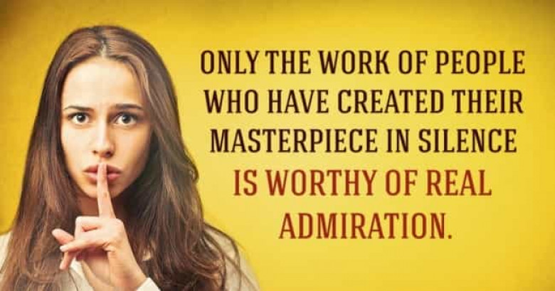 Նա ասում է. «Իմ տատիկը միշտ ասում էր. «Եթե ցանկանում ես խուսափել ուրիշների չարությունից, սիրիր լռել»: Ոչ ոք չպետք է իմանա ձեր կյանքի, երազանքների, ձեռքբերումների, ձեր հաջողակ լինելու մեթոդների և ձեր ձախողումների մասին: Դուք ոչ ոքի բացատրություն տալու կարիք չունեք: Սա վերաբերում է ոչ միայն ձեր երջանկությանը, այլ նաև ձեր նպատակներին: Եթե բարձրաձայնում եք ձեր նպատակների և ցանկությունների մասին, ամենայն հավանականությամբ դուք դրանք ավելի դժվարությամբ եք կարողանում իրականացնել: Ձեր երազանքներն այլևս այդքան գրավիչ չեն լինի եթե պատմեք ուրիշներին դրանց մասին: Դուք կկորցնեք ձեր մոտիվացիան»: