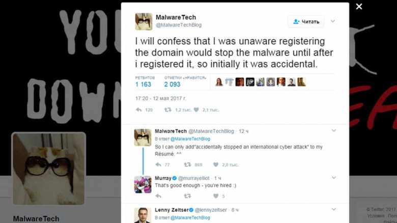 @MalwareTechBlod также добавил, что теперь может занести в свое резюме, как он «случайно остановил международную кибератаку».