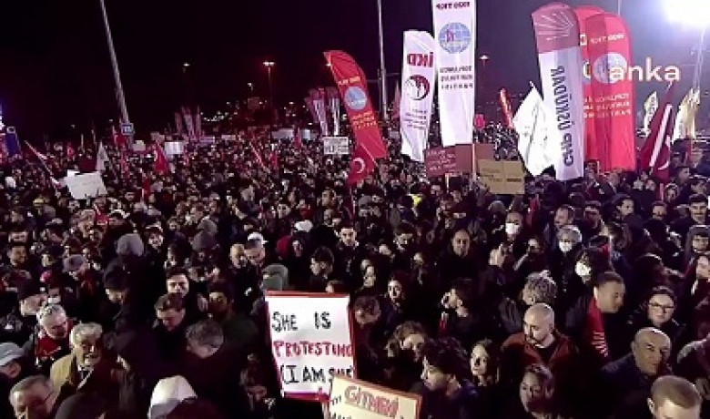 Возле дворца правосудия в Стамбуле произошла перепалка между адвокатами и полицией, которая не пропускала их во дворец. Ранее туда для дачи показаний доставили задержанного мэра Стамбула Экрема Имамоглу и других подозреваемых.