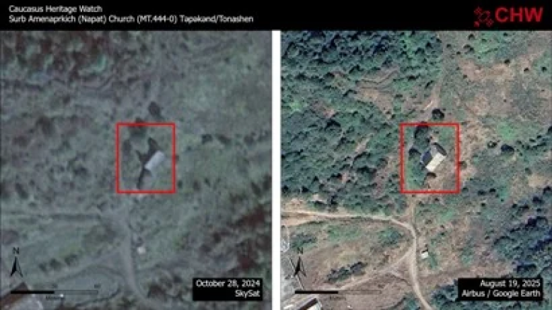 ПОЛИТИКАПоврежден монастырь «Сурб Аменапркич» XVII века, расположенный у населенного пункта Тонашен в Арцахе, ныне оккупированном Азербайджаном. В 2024-2025 годах была удалена большая часть металлического покрытия монастыря, установленного во время реставрации в 2009 году властями Арцаха. Об этом пишет международная организация по защите кавказского наследия (Caucasus Heritage Watch).